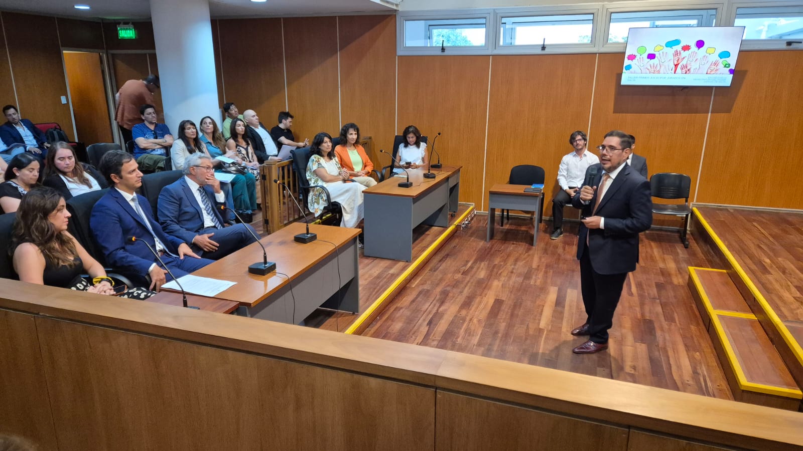 Fabián Vittar fue el responsable de abrir el encuentro y resaltar la trascendencia del cambio a implementar en el juzgamiento de los casos con jurados populares. Estuvieron presentes la vicepresidenta segunda de la Corte de Justicia